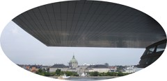 - View from the Copenhagen Opera House towards Amalienborg Palace, winter home of the Danish royal family and residence of Queen Margrethe II, and the Marble Church