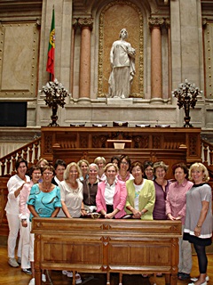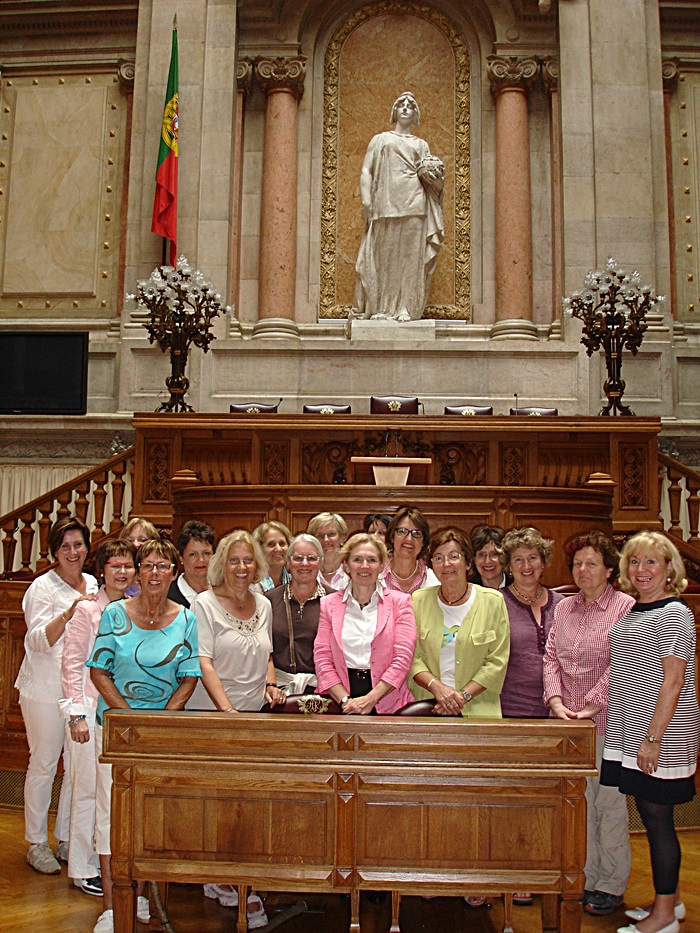 The traditional politico-cultural tour of the European Women's Circle took place from June 19 to 22, 2014 and took a group of members to the capital of the European Union's most south-western member state, Lisbon. Portugal's location on the Atlantic Ocean prompted its rise to a global power in the 16th century through the discovery of the sea route to India, the ensuing trade, and the founding of colonies as well as discovery of gold in Brazil. Still today, Lisbon's economy profits from ocean shipping and tourism due to its proximity to the ocean. The European Women's Circle met Elza Pais, MP, Chairwoman of the Subcommittee on Equal Opportunity, in the parliament for an in-depth talk about the social and political situation of women in Portugal. The 8% wage differential between women and men in Portugal is quite low in comparison to Germany's 23%. The reason for this, though, is that the Portuguese wage level is low on average for both genders. Families depend on women's incomes. Therefore, virtually all women are working full time. The double burden of working for an income and the family reduces women's chances at a career. According to Elza Pais, this results in decreasing birth rates. An additional, significant problem is the youth unemployment rate of an exorbitant 36%. The extensive cultural program led the participants to sights in Lisbon and the surrounding areas: in Lisbon, the group visited Sé Patriarcal (the oldest church of the city), Sao Vicente, the Basílica da Estrela; the Jéronimos Monastery was part of the visit to the famous town of Belém. |