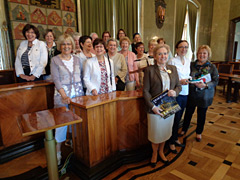 The European Women's Circle organized his year's international politico-cultural tour from June 15 to June 18, 2017 to Krakow. The trip participants and Chairwoman Daniela Topp-Burghardt were warm-hearted welcomed in the town hall by A. Szybist and M. Jantos, two polish politicians of Krakow. The very interesting political discussion about different subjects was held very openly and shed light on long-term economic development in Poland as well after the break-up of the Eastern bloc as after the accession to the EU in 2004. The situation of women is similar to those in Germany. Due to wage difference and insufficient supply of day care nurseries women are professional disadvantaged and that will lead them to small pension or even to poverty in old ages. The wonderful historic centre of Krakow was not destroyed during the Second World war. So the Cloth Hall is a contemporary witness of thriving trade of a wealthy bourgeoisie, churches and the castle indicate art, culture and the influence of the catholic church for centuries. The old university, Collegium Maius, was already the academic home of Copernicus and the later pope Joh.-Paulus II. Traditional restaurants with polish and international kitchen are an ideal frame of conversation about all impressions of the day. The participants had a common time in and for Europe and for an improved understanding between European citizens. |