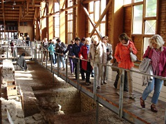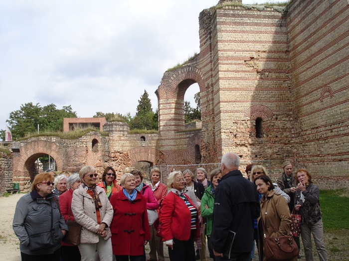 The visit started with a lead tour of the "Roman Villa", a roman excavation of exceptional quality, which was discovered by chance during construction work on a street on 1980. The group continued to the medieval town centre of Ahrweiler, where the impressive 13th-century city wall was a fantastic backdrop to the historic talk about the town's past. The Regierungsbunker", bunker of the government, from the time of the cold war was the next destination. A guided tour through the bunker, which has been converted into a museum, explained its significance.
