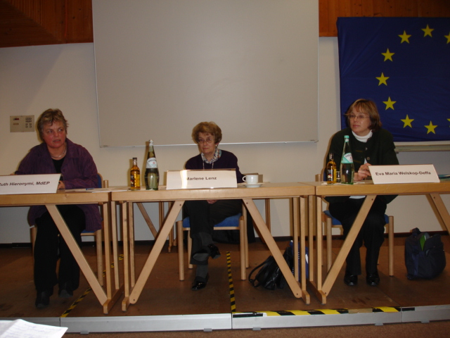 Discussion about “Key Topics in Equal Opportunity Policy”In January 2007 the European Women’s Circle organised a discussion together with the Europe task force of the CDU Women’s Union Mittelrhein and the EU information centre at the Andreas-Hermes-Academy on the occasion of the German presidency of the Council of the European Union. Ruth Hieronymi MdEP, Marlene Lenz, task force director and former MEP and Eva Maria Welskop-Deffaa, director of the bureau of equal opportunity in the federal department of family, seniors, women, and youths, led the discussion on key topics in equal opportunity policy. The topics of the discussion were directly related to the talks about the public and private situation of women in the numerous countries the European Women’s Circle visited on its politico-cultural trips. |