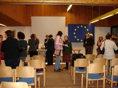 Discussion about “Mobility in Europe”In March 2006 the European Women’s Circle organised a discussion about “Mobility in Europe” together with the Europe Direct information centre in Cologne. The Expansion of the European Union in 2004 prompted us to discuss the future development of both the European job market and the mobility of young people. Projects which work towards the acknowledgement of educational degrees throughout Europe based on international comparability are of central importance and are supported by the European Commission. The large audience gained detailed insight into the topic and the possibility of occupational mobility for young people during and after their education within the European Union. Members of the group of speakers were: |