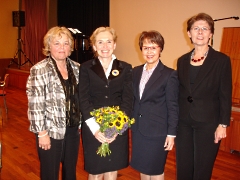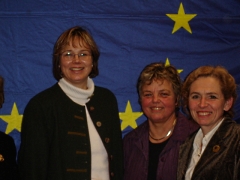 EuropatagOn November 5, 2004 the European Women’s Circle under the direction of chairwoman Daniela Topp-Burghardt organised a Europe Day with the slogan “Growing and Growing Together”, in cooperation with Ruth Hieronymi, MEP. The reception by Mayor Müller in the historical town hall was followed by a discussion about difficulties and chances for women in the expanded European Union. Over a hundred women from North Rhine-Westphalia enjoyed talking to Ljudmila Novak, MEP from the new EU member state Slovenia, Christine Bruneau, Mayor of Boulogne-Billancout/Paris and Anna-Maria Cervone, from Rome, president of the umbrella group of Christian Democratic Women. The Europe Day’s second part took place in Cologne’s International Kolping House. Willy Landsberg, chairman of the “Organisation for European e-Government” gave a talk on current developments in electronic communication. Practical examples livened the rather dry material up and made the topic more palpable and understandable. A tasty buffet set the scene for more in-depth talks between politicians and guests. The evening’s cultural highlight was the performance by the young and highly talented opera singer Katrin Glaser and pianist Birgit Klösters. We are proud of a Europe Day which contributed to communication and understanding through international meetings and discussions and is hoped to be continued by so many. |