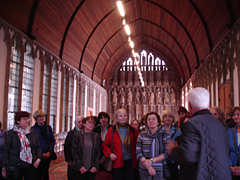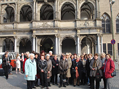 Tour through the Historic Town Hall of Cologne in March 2015 for the European Women's Circle by Bernd Ensmann, former long-time councilor.At the time of the construction of the Historic Town Hall, Cologne was one of the largest cities in Europe. The early economic strength of the Free and Hanseatic City of Cologne becomes apparent when considering the magnificently built town hall. The tower, at 61 meter high, is a sign of the citizens' power and is similar to the Belgian belfries of this period. The Renaissance alcove's decorations also testifies to a self-confident, wealthy citizenry. The Hansa Hall is adorned by precious Gothic sculptures of significant Christians and European rulers. It was here that in 1396 the citizenry gave itself a kind of constitution in the form of the Verbundbrief that broke the hegemony of the patricians. Unique throughout the Holy Roman Empire was the fact that the Verbundbrief was also signed by women having equal rights as men. Through this tour, the participants were given deeper insight into the development of citizens' self-determination in medieval Europe by the example of Cologne. |