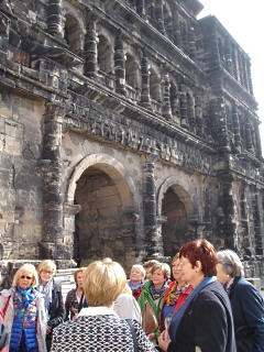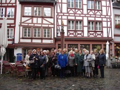 TrierThe European Women's Circle visited Trier on September 24, 2014 as a German town which bears witness to Europe's ancient cultural history and is situated in close proximity to the three EU member states of Belgium, Luxemburg, and France. Germany's oldest town, Trier, is named for the celtic settlement of the tribe of the Treveri. Under Roman rule, the town grew to be the largest one north of the Alps with 100,000 inhabitants, and many historical buildings from this era - the Porta Nigra, the Cathedral, the Constantine Basilica, the Imperial Baths, among others - are designated as UNESCO World heritage sites. Trier has been rebuilt each time it suffered destruction due to marauding Vandals and Vikings, seizure by French and Spanish troops during the Thirty Years' War, and bombings during World War II. Karl Marx, born here, changed Europe and influenced large parts of the world with his theories; a third of the visitors to his birthplace today comes from China. Concluding the trip, the participants enjoyed an interesting tour a vineyard of the Mosel Valley, home to vineyards and viticulture for two millenia. |