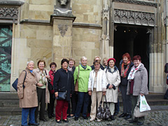 MünsterOn September 23rd, 2015, the European Women's Circle offered a day trip to Münster, a city with European significance and a special historical background. It was here that the Peace of Westphalia was signed on October 24th, 1648 which ended the Thirty Years' War, a fierce power struggle between two religious ideologies. The Hall of Peace (named after this event) can still be visited today in City Hall. Also, it is the birthplace of the modern Netherlands, as the Peace of Münster, agreed upon during the Congress of January 1648, ended the 80-year Spanish-Dutch war. This was another harsh fight of oppression that was founded on the claim of sole rule of a religious conviction. The program included sights which showed the development of the city through different European building styles as well as the spiritual-secular and civic demonstrations of power: St. Paul's Cathedral with its significant Astronomical Clock, City Hall with the famous Hall of Peace, the Prinzipalmarkt which was situated on the historic European trade routes, St. Lambert's Church, and the so-called Baroque Island with the magnificent Erbdrostenhof and St. Clemens' Church. Since Münster was almost completely destroyed by bombing during World War 2, the citizens took care to rebuild as true to the original as possible. |