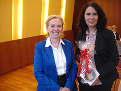 Dr. Renate Sommer, member of the European Parliament, emphasized in her address: "How unified is Europe", that Europe faces other continents with over a billion people and huge economic regions, and that it can attain an important role in the globally competitive economy only as a community. Laura Nürnberger (vocals) and Constantin Chepa (piano), who are both students at Cologne's Conservatory, presented beautiful arias and chansons from different musical eras and styles. Their musical talent contributed to the festive atmosphere of the anniversary celebration. The European Women's Circle invited the guests to a buffet in conclusion of the evening. |