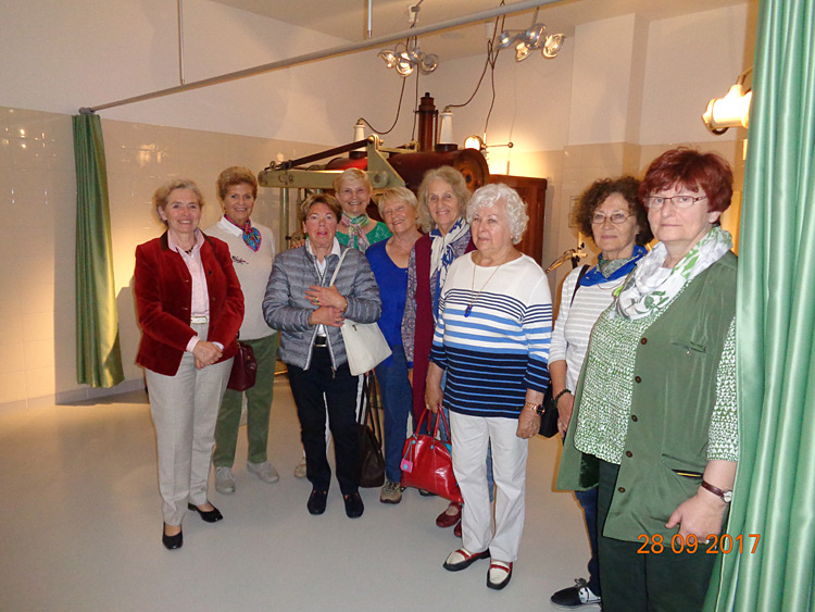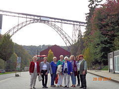 On September 28th, 2017 the European Women's Circle organized a day trip to Remscheid/Lennep, an ancient Hanseatic city and the capital of Duchy of Berg. In former times an important city of commerce, specially of drapery, in 1746 Lennep was nearly completely destroyed by a major fire. In 1845 Wilhelm Conrad Röntgen, the discoverer of "X rays" was borne here. His epoch-making discovery revolutionized all over Europe e.g. medical diagnostic. The Museum of Röntgen shows Röngten as man in his time, his discovery from 1895, for the reason he got the very first Nobel prize for physics, and the application possibilities and their developments. The participants of the European Women's Circle appreciates the excellent guiding tour by the former director of the Museum. After the tour in the old city the Ladies were guided to the Müngstener Bridge, constructed in 1897 and the highest railway bridge in the whole of Europe for the following 90 years. |